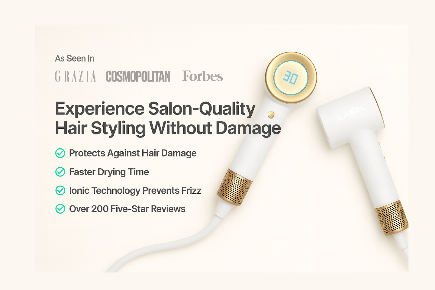 Compare the essentials that matter every morning—speed, control, noise and shine. Label Hair focuses airflow where it counts for faster, smoother styling at gentler temperatures.
